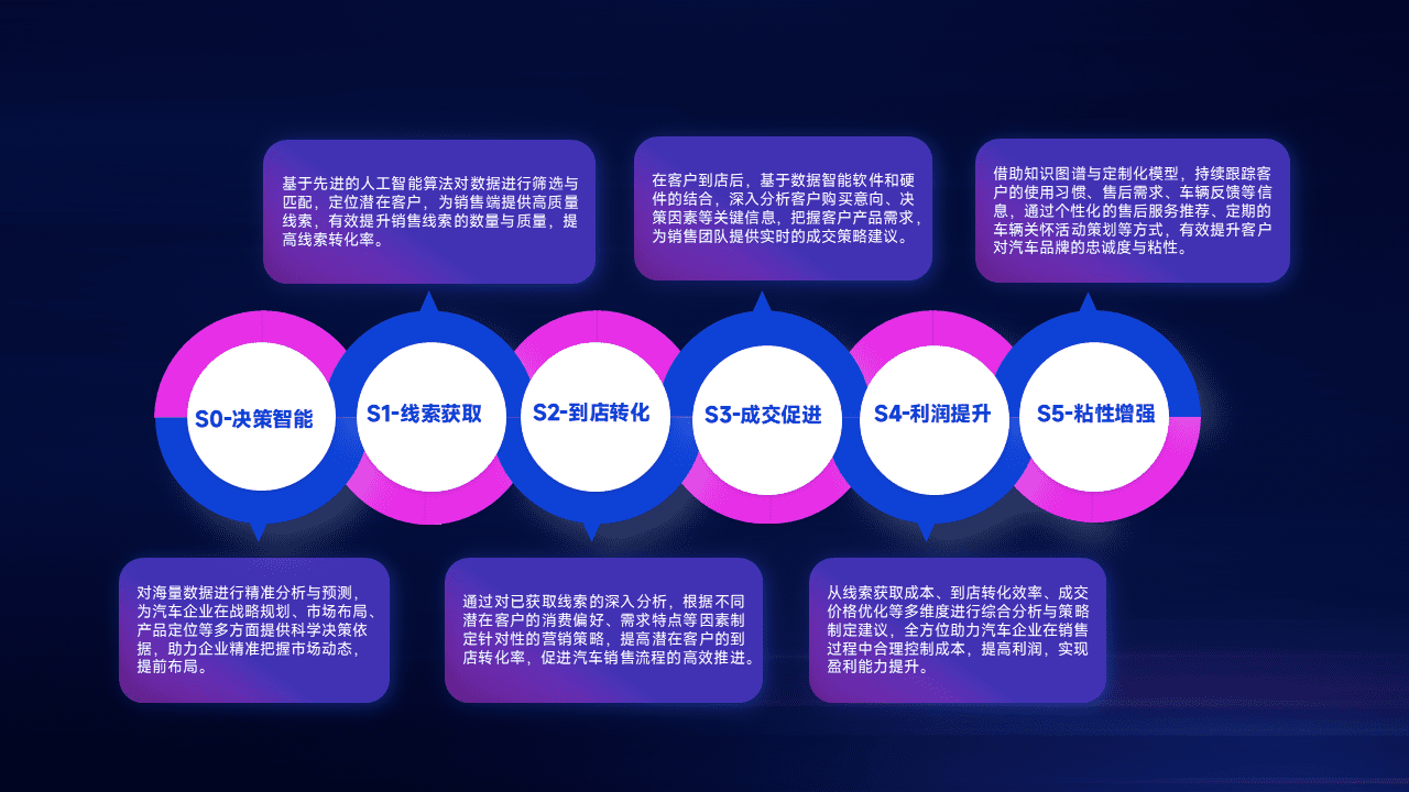通过拓宽潜在客户来源、、优化线索分配并提高到店转化率,,,,以增强销售效率。。同时,,,利用线索数据不断优化分析模型,,有效提升转化率,,扩大营销影响力。。。。